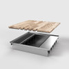 Gulvboks i natur eloksert aluminium. Komplett pakke. Gulvuttak laget av aluminium med deksel til å henge opp. Dekselet lukkes også i rett eller vinklet form når plugger er satt inn. Ideell for tepper.