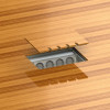 Gulvboks i natur eloksert aluminium med vendbart lokk, den ene siden er for ilegg av 5 mm teppe eller lignende. Den andre siden er blank. Komplett pakke. Gulvuttak laget av sluminium med deksel til å henge opp. Dekselet lukkes også i rett eller vinklet form når plugger er satt inn. Ideell for tepper. Deksel er i 1,5mm rustfritt stål.
