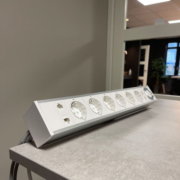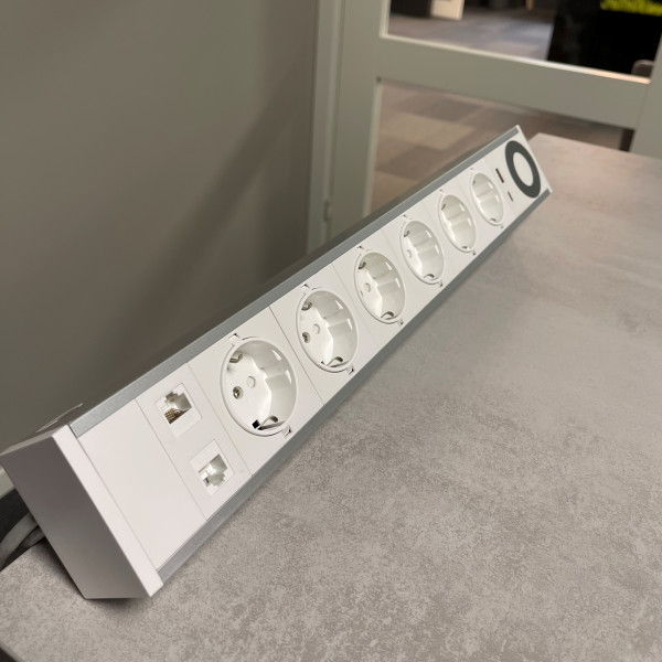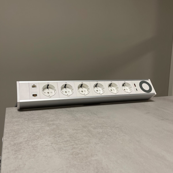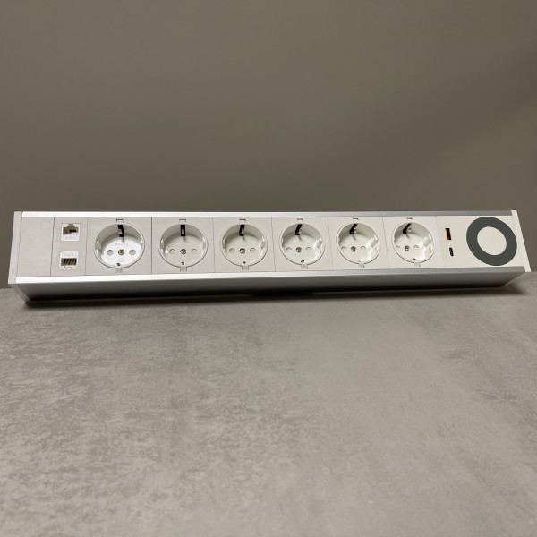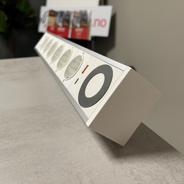 6 stikkontakter, 2 USB (A+C) + 2 RJ45 CAT6A + Qi-lader!
