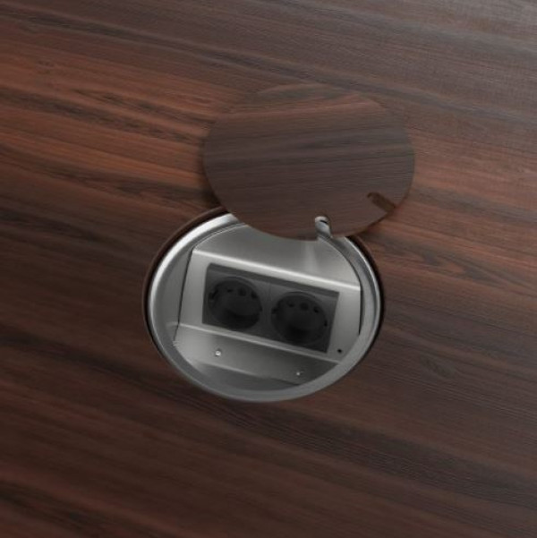 Gulvboks i natur eloksert aluminium med vendbart lokk, den ene siden er for ilegg av 5 mm teppe eller lignende. Den andre siden er blank. Komplett pakke.