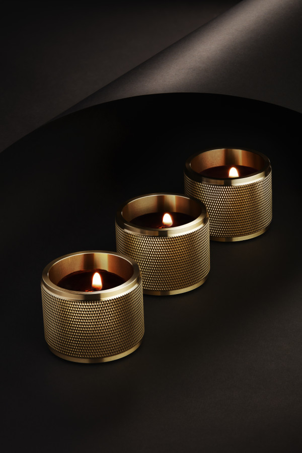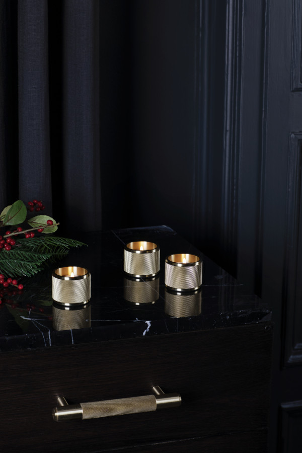 Den maskinerte overflaten på innsiden av holderen er laget av en solid messingstang, og skaper fantastiske refleksjoner fra stearinlyset. Fungerer utmerket med alle standard telys (med en maksimal diameter på 42 mm), telys ikke inkludert