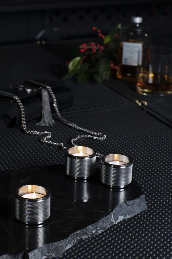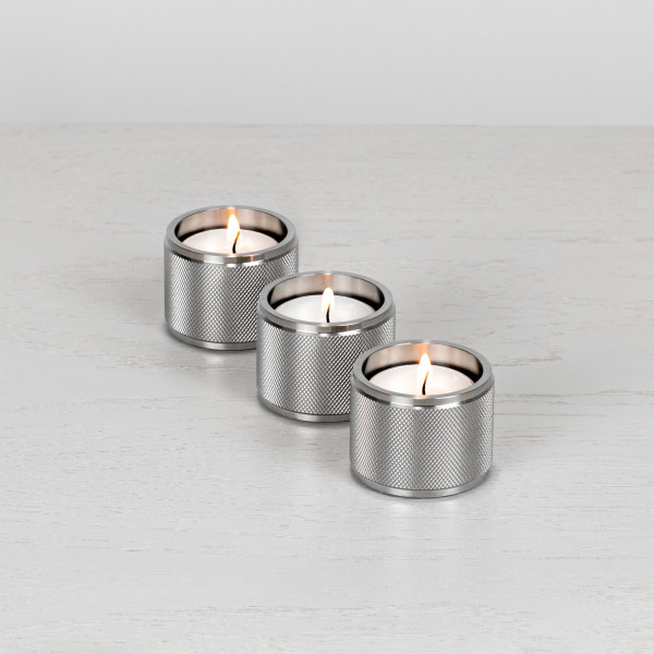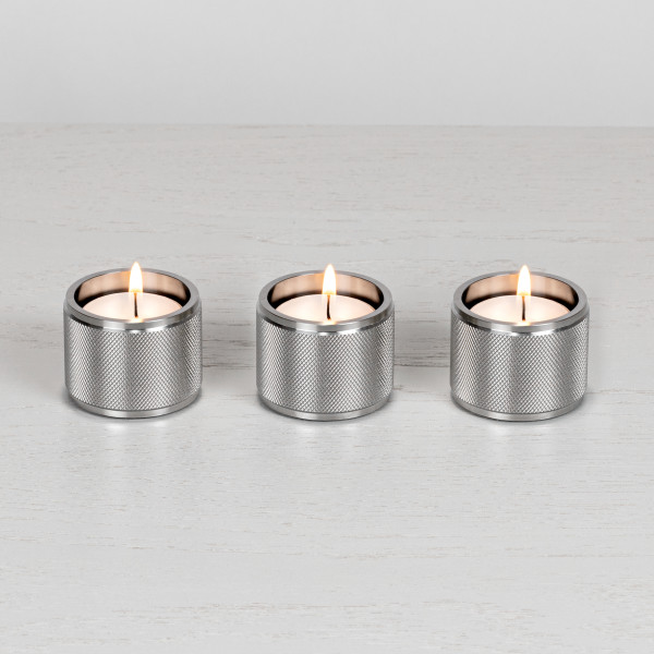 Den maskinerte overflaten på innsiden av holderen er laget av en solid messingstang, og skaper fantastiske refleksjoner fra stearinlyset. Fungerer utmerket med alle standard telys (med en maksimal diameter på 42 mm), telys ikke inkludert