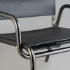 En lenestol med en ikonisk 70-tallssilhuett, bred stålrørsramme og et komfortabelt sete og rygg i fullnarvet svart skinn. Ferdig i en dyp sort krom, med B+P messing logohetter. Slitesterk, stablebar og enkel å plassere i interiøret ditt.