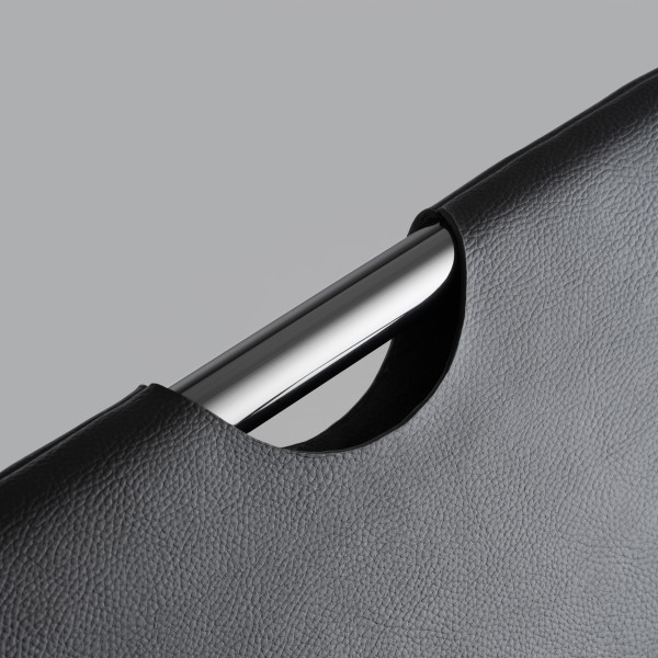En lenestol med overdimensjonert stålramme, ferdig i sort krom. Leveres komplett med et 3 mm tykt setetrekk og rygg i sort skinn. Stolen er ferdig med solid messing 'B+P' logohetter. Denne lenestolen kan stables. Denne stolen ble først designet i 1973 og har en tydelig 70-tallsprofil, med en sjenerøs holdning og ikoniske linjer. Det tykke skinnsetet og ryggstøtten sikrer at stolen både er komfortabel og vil eldes vakkert over tid. Beltespenner på undersiden av setetrekket gir mulighet for fremtidig justering. FYI: Dette produktet sendes flatpakket for å redusere utslipp og spare ressurser. Installasjonen er enkel og krever bare åtte skruer.