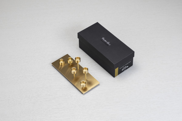 En MASKINERET plate laget av solid børstet MESSING og leveres komplett med 6 høye lysestaker.