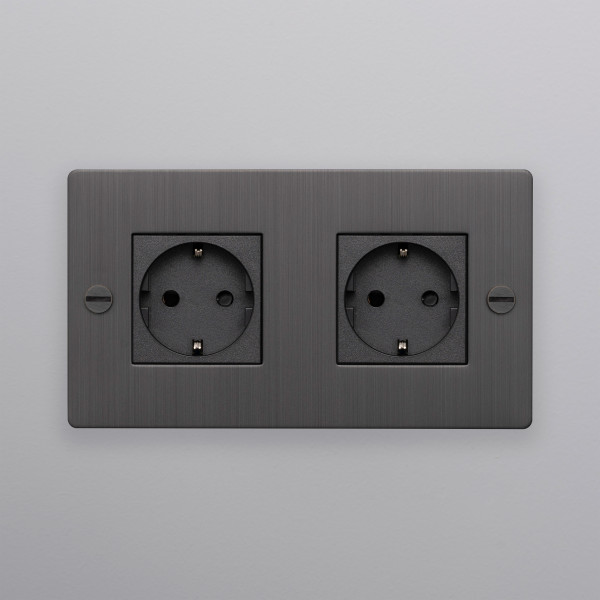 En 2G Schuko Type F-kontakt. Jordet stikkontakt med ramme i ekte metall.