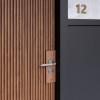 Et par fjærede dørhåndtak laget av solid metall og har B+P sitt signatur, diamantskårne, lineære riflemønster og er produsert for hånd i London og designet er patentert. Fungerer bra på alle innvendige dører og kan