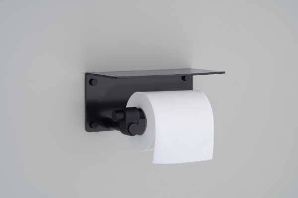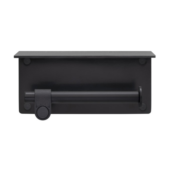 En toalettrullholder og hylle laget av solid metall, med vår signatur grovstøpte knoke
