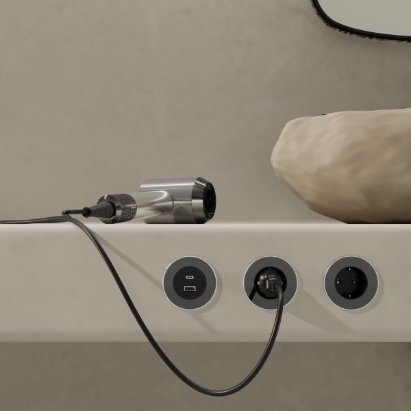 VersaDot er et enkelt og kompakt kraftsystem. Takket være sitt lille installasjonshull (kun 60mm), kan VersaDot brukes på mange steder, for eksempel kjøkken, kontor, bad etc.