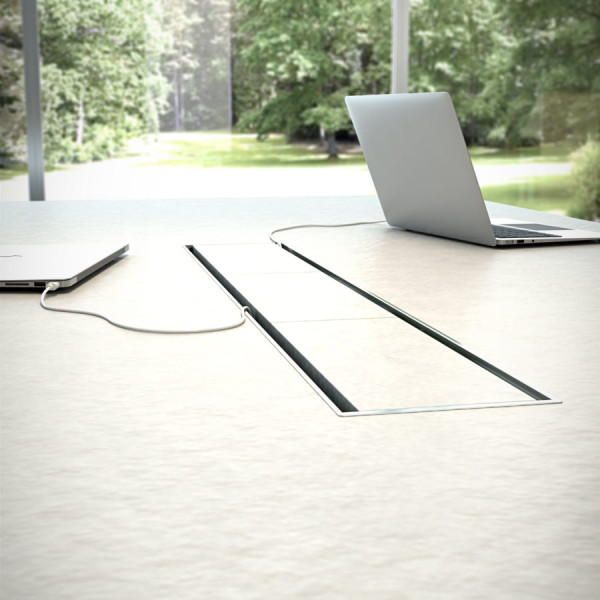Exit fly tillater kabelhåndtering på benkeplaten, benkesystemer og møtebord i forskjellige størrelser og utførelser.