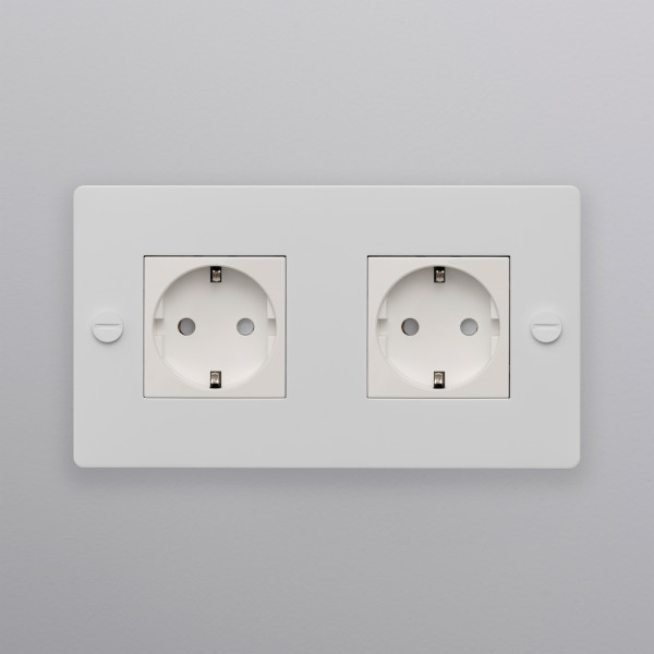 En 2G Schuko Type F-kontakt. Jordet stikkontakt med ramme i ekte metall.
