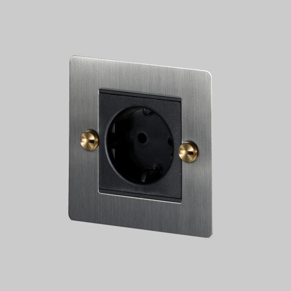 En enkelt eurostikkontakt laget av massivt metall og kommer med B+P sine signatur skrue som matcher fargen. Alt er laget i solid metall. Laget i fem finisher for å matche ditt interiør. Håndlaget i London, England.