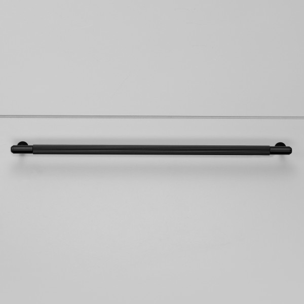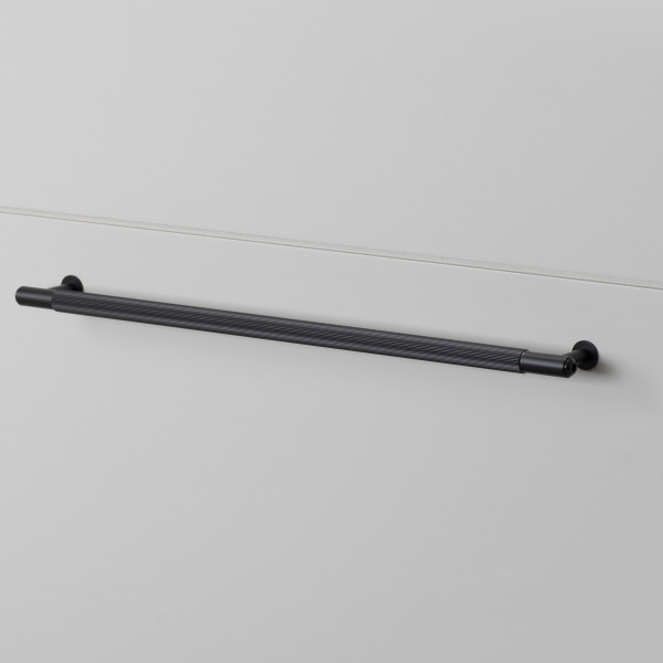 PULL BAR er laget av solid stainless steel metall eller i tre andre finisher. PULL BAR har B+P sitt signatur, diamantskårne, lineære riflemønster og er
