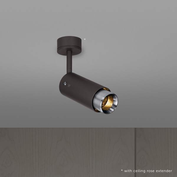 Filteret fanger lyset og skaper en metallisk glød, og gir et ikke-blendende, retningslys. EXHAUST SPOT er fullt justerbar, leveres med en flush rund takplate. Passer med GU10-pære. Inkludert er en forlenger, i matchende grafittmetall, for montering på eksponert kabling. Da har man 14mm ekstra.