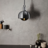 En pendellampe og skjerm, kombinere maskinert, håndspunnet og støpt solid metall, alt raffinert for hånd. Den har rollebesetningen vår gaffeldetaljer og signatur diamantslipt lineær rifling. Lyset leveres komplett med en håndblåst globus av røkt glass og Forked-spesifikk dimbar BUSTER Pære / FORKED, lyset gir et mykt omgivelseslys.