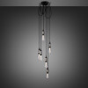 Hver anhengslengde kan justeres og hektes på en solid metallkrok skrudd i takrosen, noe som sikrer en unik skulpturell form. Krokene kan også installeres direkte i taket for å spre anhengene ut over alle møbler du ønsker.