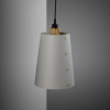 anheng med matt sorte gummidetaljer. En solid krok gjør at anhenget kan hektes på lyset og kabellengden tilpasses. Lyset kommer med en liten skjerm laget av grafitt pulverlakkert metall og ferdig med skruer i fargen man velger. Denne vegglampen kan kobles inn i veggen eller utstyres med en utenpåliggende kabel og kontakt.