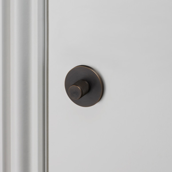 En innendørs lås laget av solid metall. Denne låsen har B+P sitt