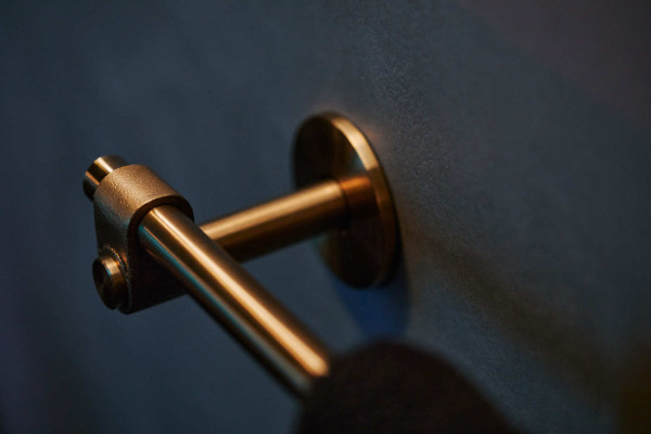 grovstøpt knoke og hånd polert solid metallstang. Egnet for baderom.