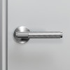Et dørhåndtak laget av solid metall. Dette dørhåndtaket har B+P sitt