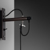 anheng med matt sorte gummidetaljer. En solid krok gjør at anhenget kan hektes på lyset og kabellengden tilpasses. Lyset kommer med en liten skjerm laget av grafitt pulverlakkert metall og ferdig med skruer i fargen man velger. Denne vegglampen kan kobles inn i veggen eller utstyres med en utenpåliggende kabel og kontakt.