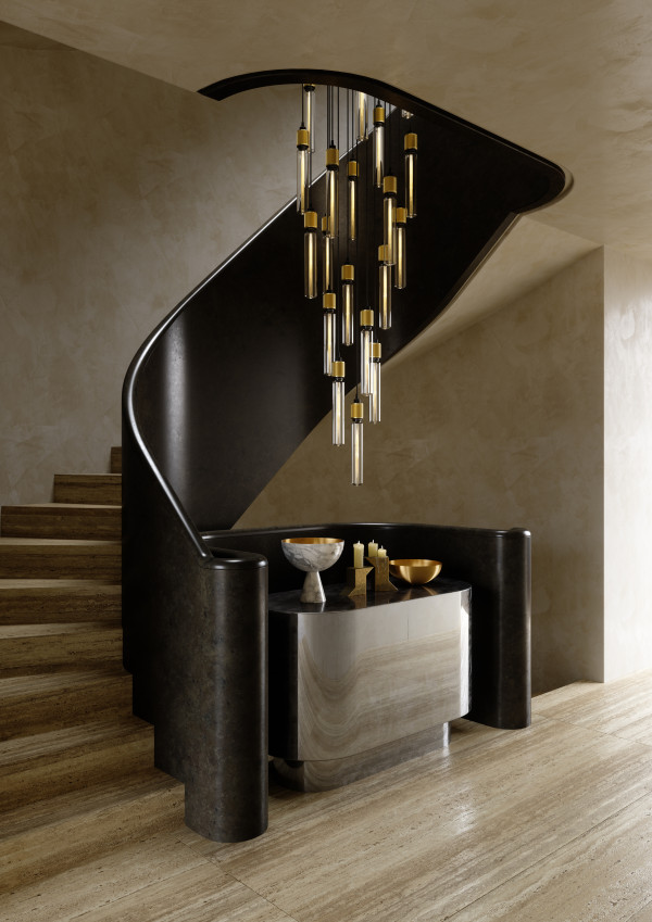 En eksklusiv lampe laget av massivt metall og med B+P sitt signatur,