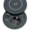 EVOline Circle80 DisQ er et nytt smart produkt som i tillegg til stikkontakt, to USB-ladere (USB-A og USB-C) også har et lokk med hurtig trådløs lading. Ladestyrken er på 15W, og fungerer både når lokket er åpent eller lukket over enheten. DisQ har magnetisk låsing av telefon slik at telefonen ligger stødig under lading. Den trådløse ladeenheten leveres med eget strømadapter. Vi leverer også egne moduler som kan brukes til å oppgradere eksisterende Circle80 med trådløs lading. Finnes i sort og hvit. Teknisk info: • Tilførselskabel: 3 m med påmontert plugg – eller 1 m med GST18 plugg (for Express) • Utsparingsmål: 80 mm • Platetykkelse: 50 mm • Dybde: kun 50 mm