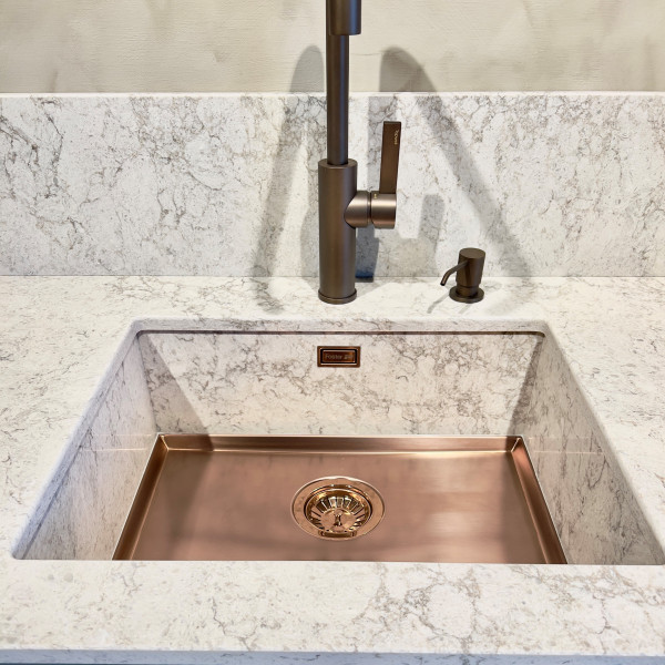Foster PVD-finishen for rustfritt stål forbedrer utseendet og styrker overflaten. Foster Gun Metal, Gold og Copper fargene vil gi kjøkkenet ditt et unikt signaturutseende.