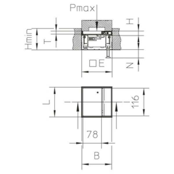 | Utsparring/hull | 131 X 131 mm |