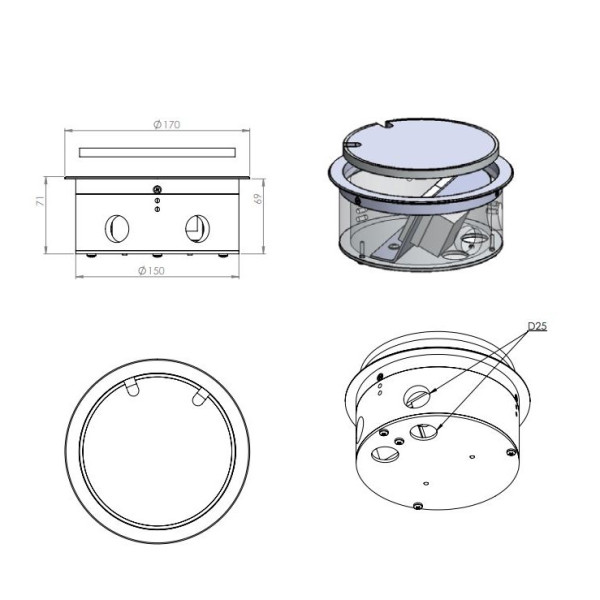 | Dimensjon HxØ | Mål: Ø 170 mm , H 71 mm |
