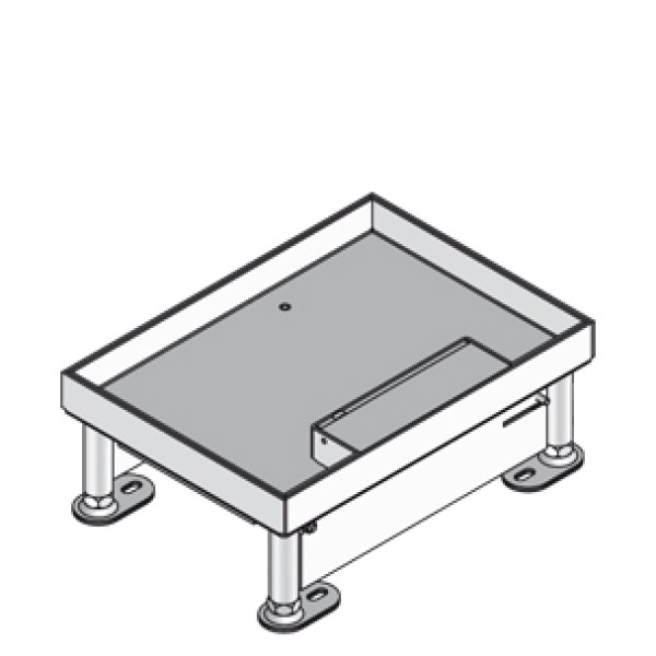 Gulvboks for nedfelling med utsparring i lokk med ben som justeres.