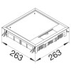 Firkantet gulvboks med 6 uttaksplasser for montering i kjerneborede hull, nedstøping, tregulv eller datagulv. Lages i halogenfri Polyamid med stålforsterking i lokket og tåler 150 kg belastning. Leveres med bestykning.