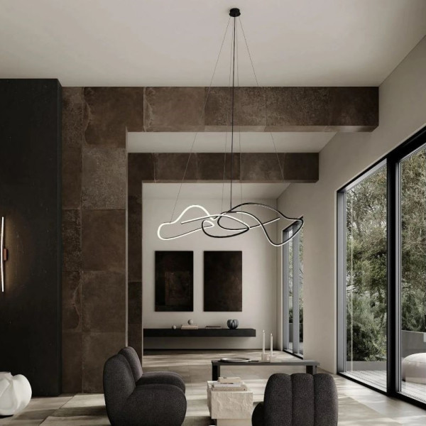 Ghost Chandelier finnes i tre varianter: Neon, Burned Black og Chrome. Neon fremhever de rene linjene i det hvite akrylrøret og tilfører interiøret en varm stemning. Chrome kombinerer det hvite akrylrøret med et slankt metallrør i kromfinish, og skaper en elegant, speilende metallskulptur. Lampen kommer i to størrelser og har innebygd LED-lys. Serien fremhever det lysende hvite akrylrøret som omslutter en slitesterk LED-lyskilde med imponerende 25 000 timers levetid og en varm lysfarge på 2400 Kelvin. I motsetning til det kalde preget man ofte forbinder med neon, gir disse innovative lampene et varmere og mer innbydende lys som skaper en koselig og behagelig atmosfære. Bronsefargede metallelementer gir en raffinert avslutning til det minimalistiske designet. Den håndlagde utformingen sørger for at lyset fordeler seg unikt langs de buede rørene – og lyser sterkere i visse deler av kurvene. Lysekronen henger i fire justerbare vaiere i rustfritt stål, slik at høyden enkelt kan tilpasses rommet.