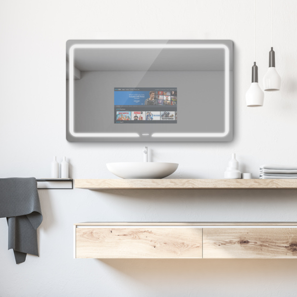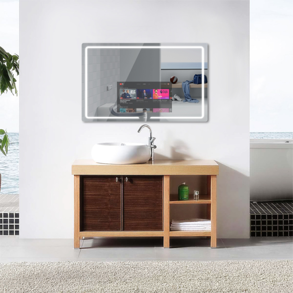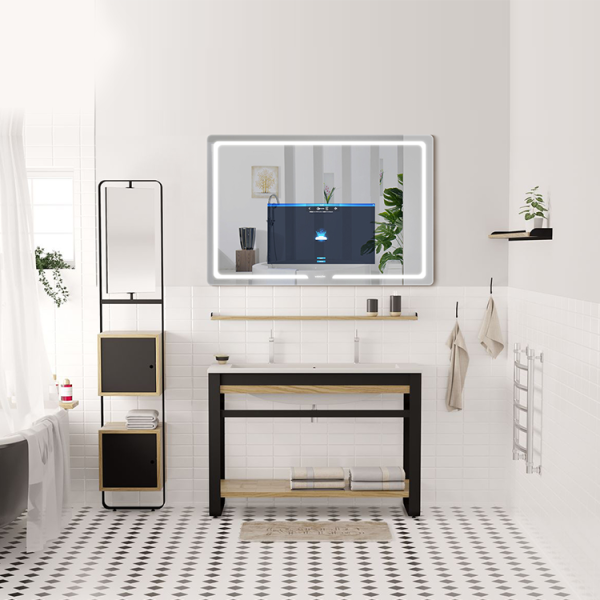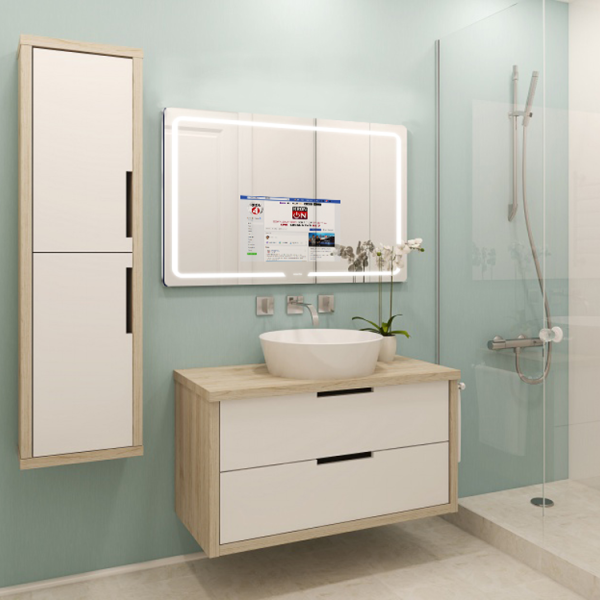 • Dette IP65 vanntette baderomsspeilet i S-serien tar alt-i-ett-designideen. Alle komponentene er forseglet i et ultratynn 2 cm skall laget av metall og speilglass. Det er et smart speil-TV-bad som blir mye brukt i hoteller og leiligheter.