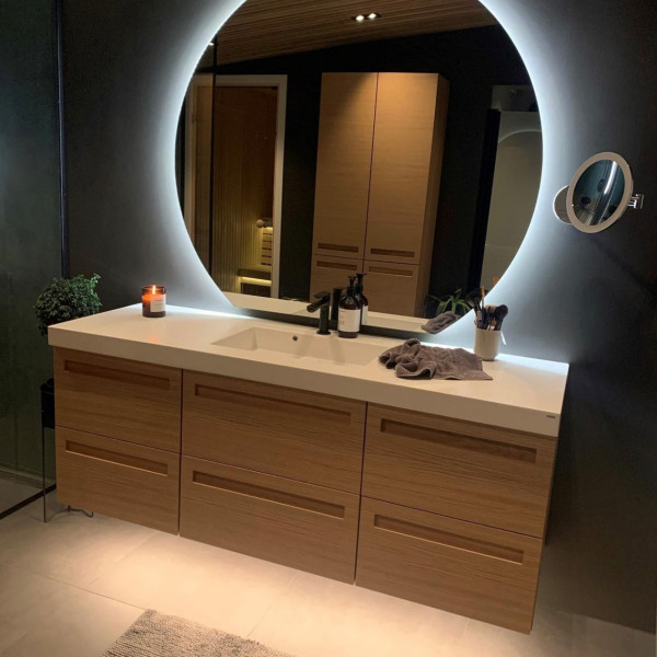 SMINKESPEIL MED 5 X FORSTØRRELSE - LED LYS - RUNDT - Matt Grafitt sort