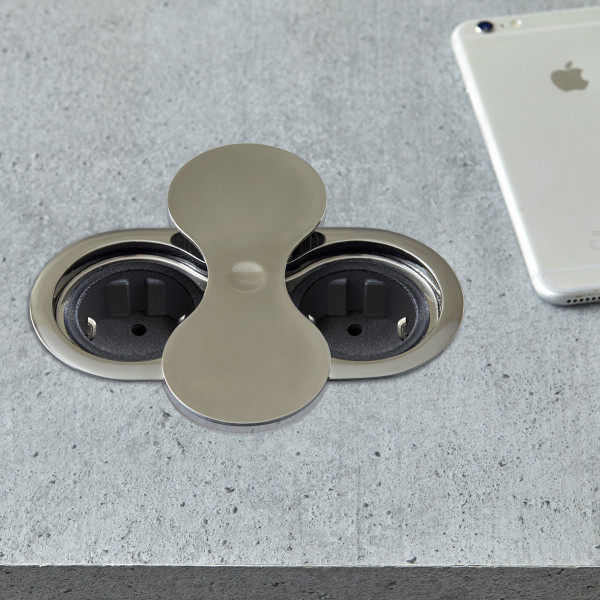 EIGHT SOCKET passer perfekt i ethvert kjøkken eller på et kontor/møterom. Designet for de spesielle kravene til kjøkken og kontor, gjør POP-UP stikkontaktens mm diameter på Ø130 mm den perfekt for montering i kjøkkenbenker eller i kontorpulter. EIGHT SOCKET bygger bare ca. 45 mm, noe som gjør den svært gunstig å felle ned i en kjøkkenbenk eller en kontorpult. POP-UP - IP20 - Låses i 2 posisjoner - snurrer.