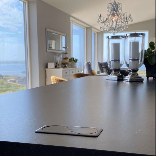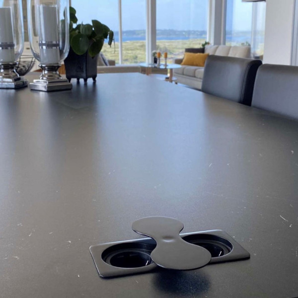 EIGHT SOCKET passer perfekt i ethvert kjøkken eller på et kontor/møterom. Designet for de spesielle kravene til kjøkken og kontor, gjør POP-UP stikkontaktens mm diameter på Ø130 mm den perfekt for montering i kjøkkenbenker eller i kontorpulter. EIGHT SOCKET bygger bare ca. 45 mm, noe som gjør den svært gunstig å felle ned i en kjøkkenbenk eller en kontorpult.